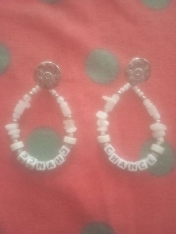 Boucle d'oreille pendante très légère avec écris chance neuve
