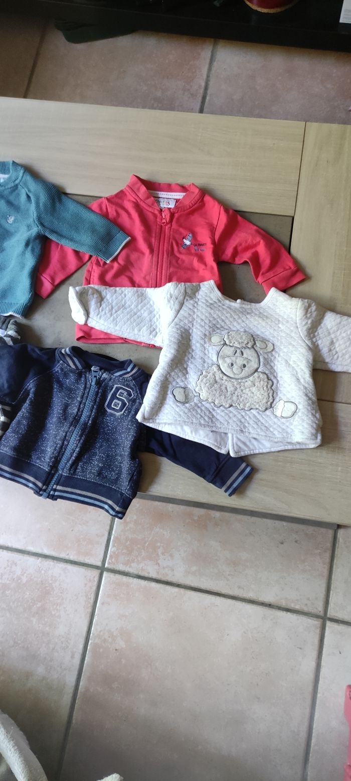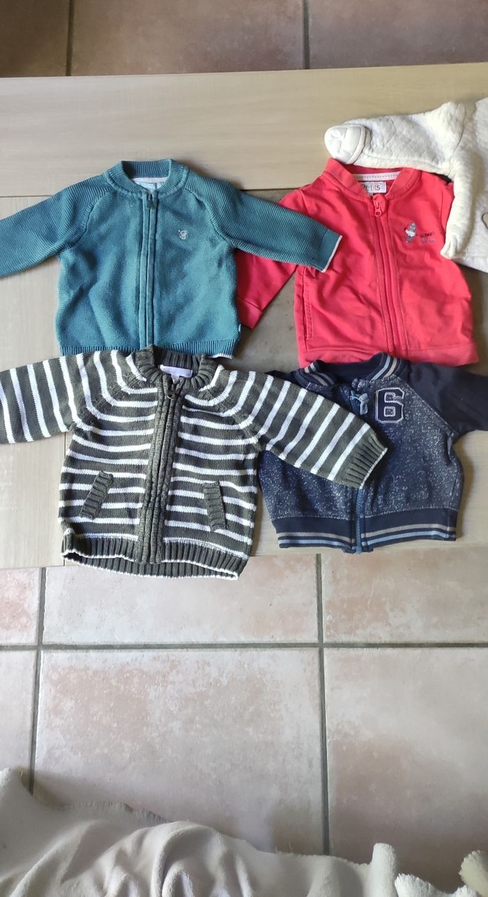 Gilet 3 mois Je donne pull mouton car bouloches sur 🐑 Pression tout le long du dos ( pull sans marque) Gilets différentes marque: obaïbi, la cie des petits ,Kitchoun