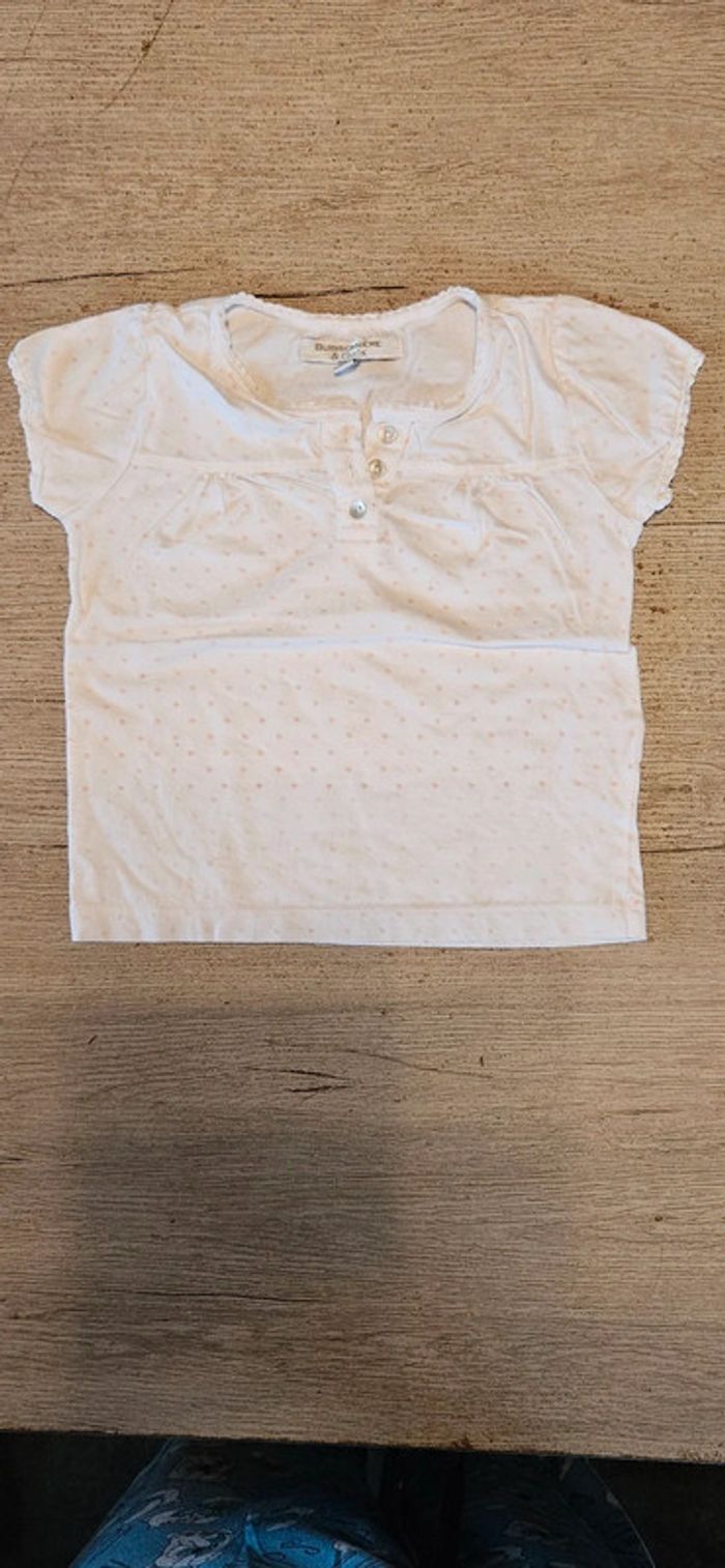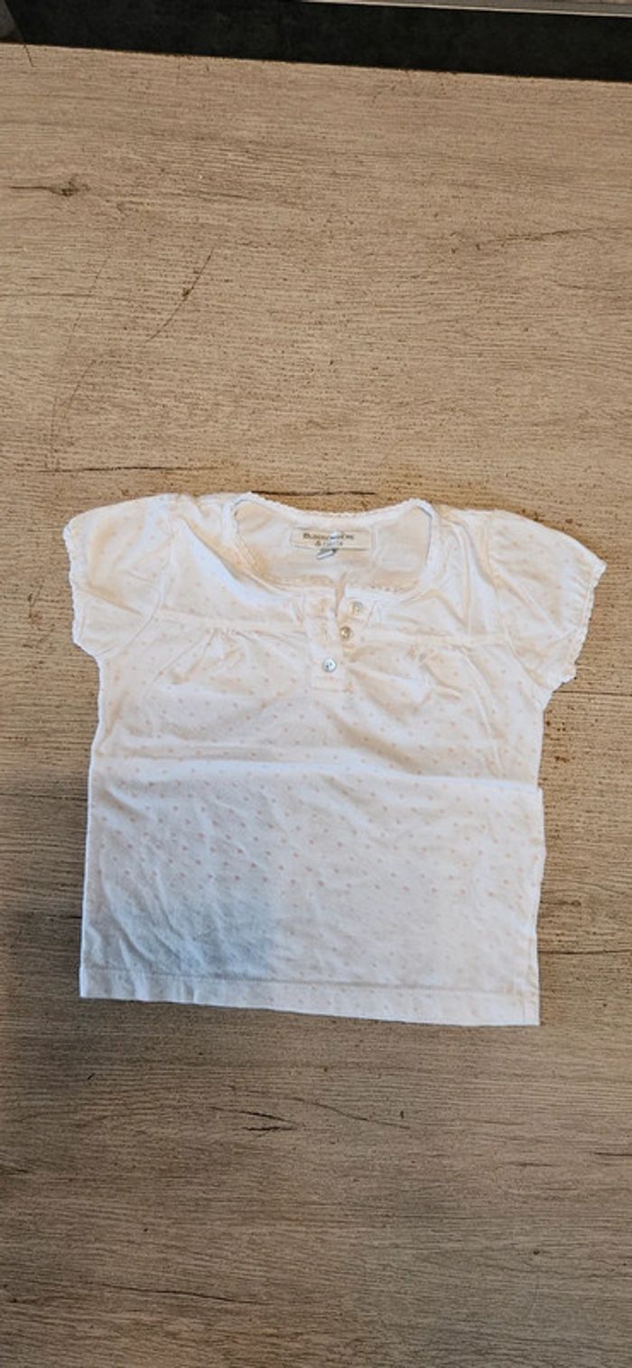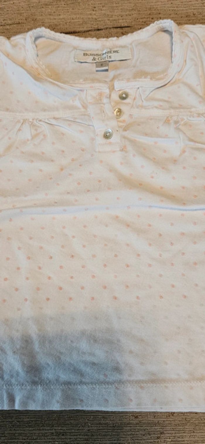 Blouse blanche,avec points roses, manches courtes, Buissonnière, 6 ans, nickel - photo numéro 1