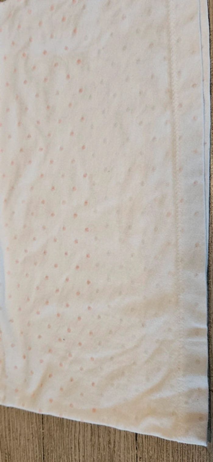 Blouse classique blanche avec des points roses tendres. Il y a 3 petits boutons au com. Peu mis. Convient pour du 5 à 6 ans. Ma fille ne l a mise qu une ou deux fois #deborahtock_5ans #deborahtock_6ans
