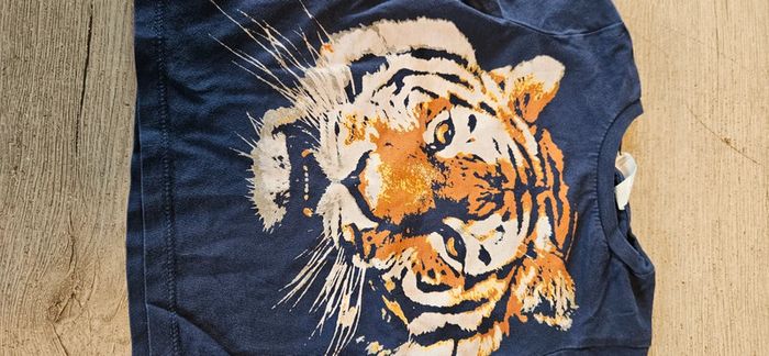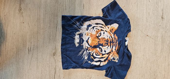 T shirt manches courtes, bleu foncé, tête de lion, H&M, taille 18/24 mois, bon.état - photo numéro 4