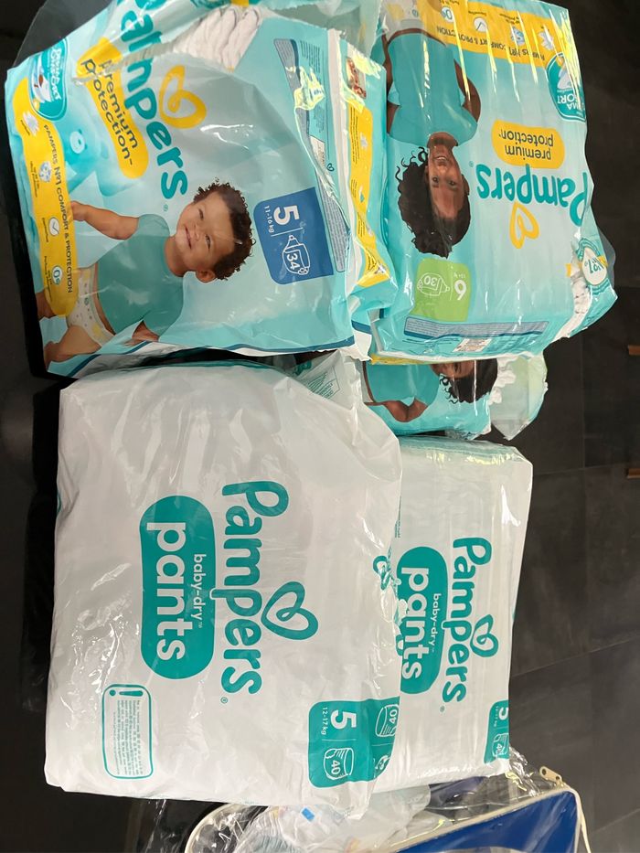 Lot de 5 paquets Pampers couches + une trentaine de couches en vracs 1 neuf fermé 3 ouverts (car j’ouvrais les paquets pour mettre quelque couche dans sa table à langer. Mais ils sont complets. Ont été stockés au sec dans mon placard. Taille 5 et. 6 30 euros le lot à venir récupérer sur place à maisons laffitte