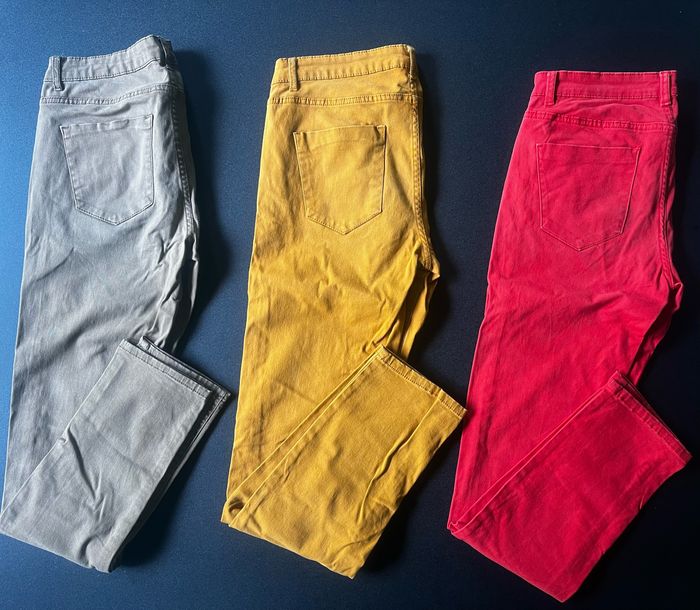 Lot 3 pantalons slim fit taille 38 , photos conformes aux articles , articles d occasion déjà portés, vêtements stockés dans des boites au grenier donc prévoir lavage à la réception ,le pantalon couleur moutarde ne comporte pas d étiquette de taille , possibilité d achat à l unité 4€ pièces ou le lot pour 10€ #comptekalenji #kalenjitaille38 #lotpantalons38 #kalenjilot