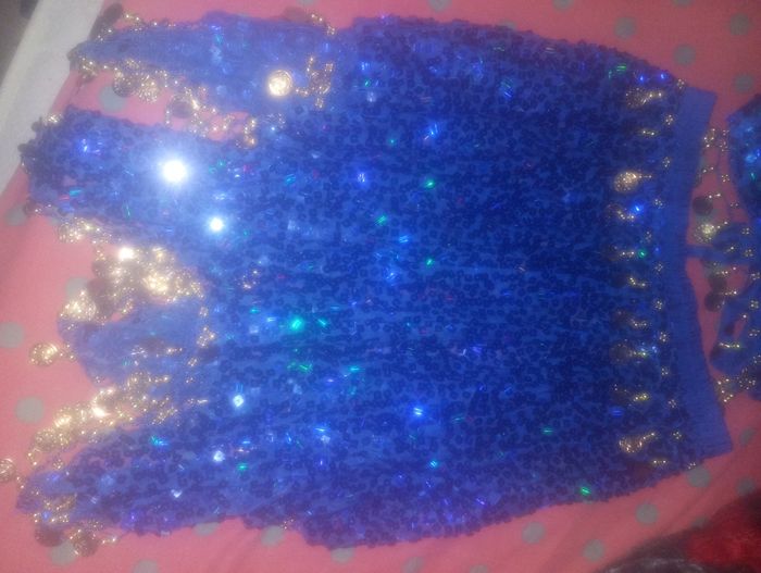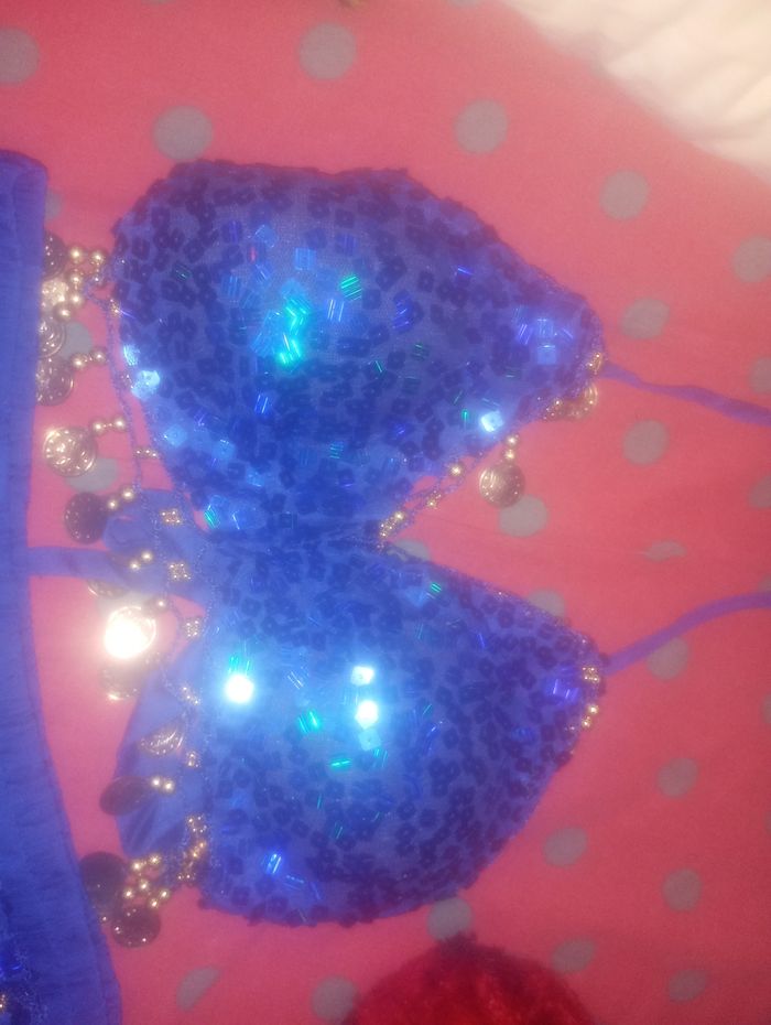 Ensemble orientale bleu roi a strass avec piécettes sur la jupe et le haut Lajupe et elastiqué a la taille Taille unique L ensemble convient a une petite poitrine Neuve