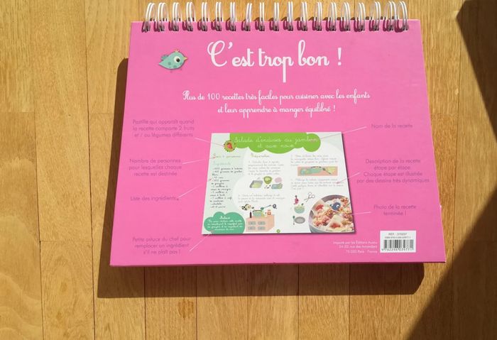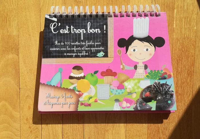 Vends livre de recettes de cuisine NEUF Comprend plus de 100 recettes très faciles pour cuisiner avec les enfants et leur apprendre à manger équilibré ! Chaque recette est organisée de manière ludique avec : - le nombre de personnes pour lesquelles chaque recette est destinée - la liste des ingrédients - Une description étape par étape. Chaque étape est illustrée par des dessins très dynamiques - Une photo de la recette terminée - Une pastille qui apparaît quand la recette comporte 2 fruits et/ou légumes Et une actuce du chef pour remplacer un ingrédient s'il ne vous plaît pas Prix de vente : 16 € À récupérer à Boulogne Billancourt (et ses environs : Paris...). Envoi possible.