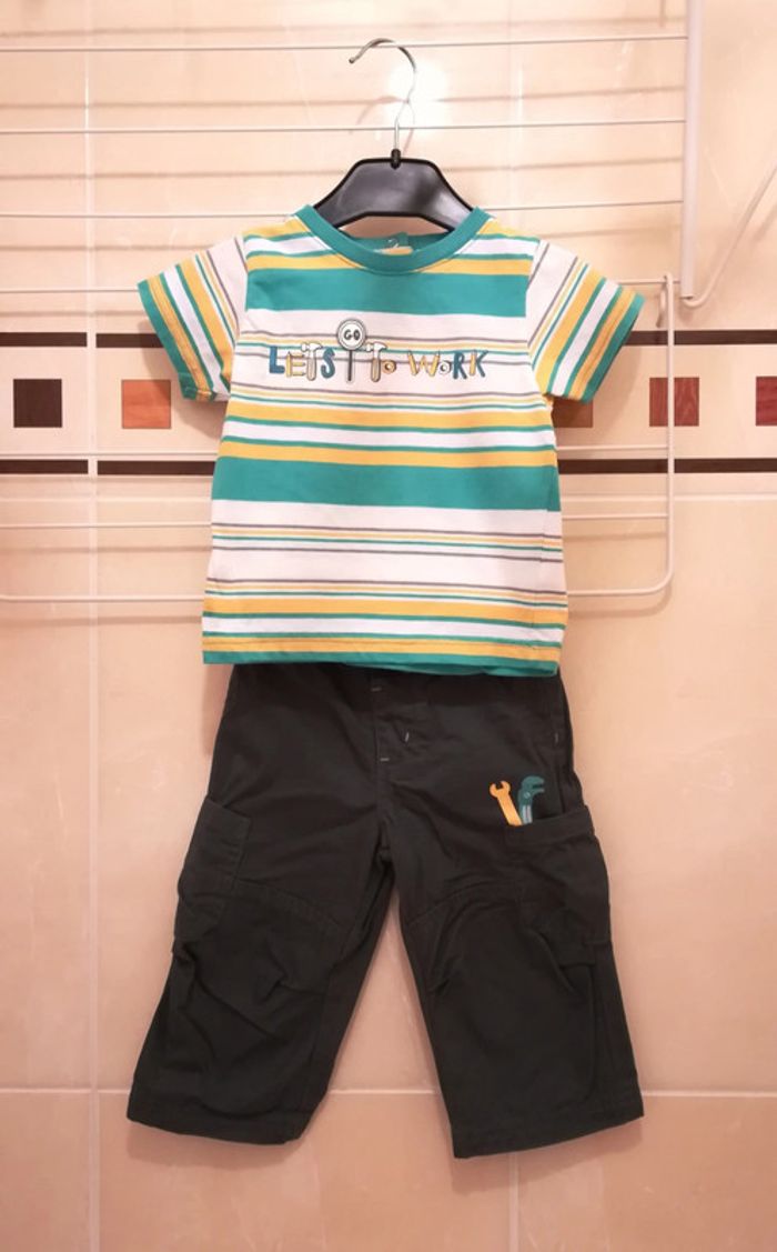 Vends ensemble Taille 12 mois - Kimbaloo comprenant : - tee-shirt - pantalon avec ceinture Je vends également d'autres vêtements taille 12 mois : #vêtementsTaille12moisgarçonV92B Prix de vente de l'ensemble : 10,50 € À récupérer à Boulogne-Billancourt (et ses environs : Paris...). Envoi possible.
