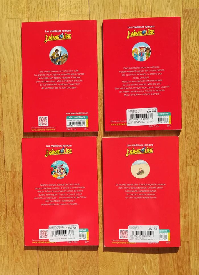 Vends lot de 4 livres "J'aime Lire" n°1, 148, 213 et 216 Dès 7 ans. Je vends également d'autres livres : #livrespremièreslecturesV92B Prix de vente unitaire : 4,50 € Prix de vente pour le lot : 17 € À récupérer à Boulogne-Billancourt (et ses environs : Paris...). Envoi possible.