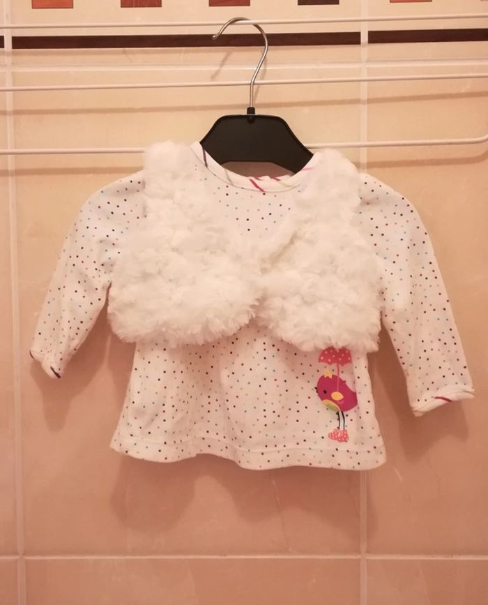 Vends ensemble (tee-shirt manches longues+veste fourrure) Taille 1 mois - C&A Je vends également d'autres vêtements taille 1 mois : #vêtementsTaille1moisfilleV92B Prix de vente : 12 € À récupérer à Boulogne-Billancourt (et ses environs : Paris...). Envoi possible.
