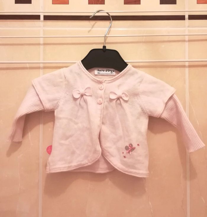 Vends gilet rose Taille 1 mois - Sucre d'Orge Je vends également d'autres vêtements taille 1 mois : #vêtementsTaille1moisfilleV92B Valeur d'achat : 22,90 € Prix de vente : 13 € À récupérer à Boulogne-Billancourt (et ses environs : Paris...). Envoi possible.