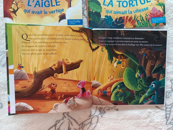 Lot de 6 livres: La kangourou qui n'avait pas de poche La taupe qui voyait loin L'aigle qui avait le vertige La tortue qui aimait la vitesse L'agneau qui avait mauvais caractère Le caméléon qui n'aimait que le rose