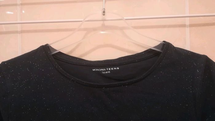 Vends tee-shirt NEUF pailleté Taille 14 ans - Monoprix Je vends également d'autres vêtements taille 14 ans : #vêtementsTaille14ansfilleV92B Prix de vente : 11 € À récupérer à Boulogne-Billancourt (et ses environs : Paris...). Envoi possible.