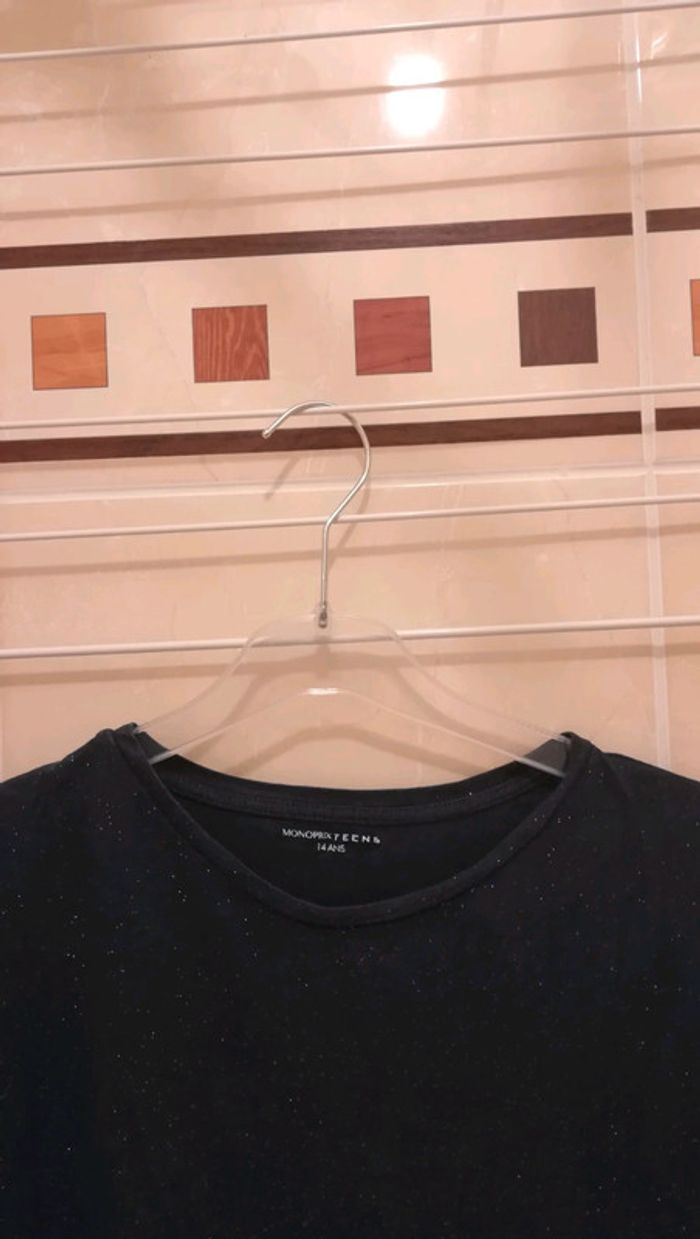 Vends tee-shirt pailleté Taille 14 ans - Monoprix Je vends également d'autres vêtements taille 14 ans : #vêtementsTaille14ansfilleV92B Prix de vente : 8,50 € À récupérer à Boulogne-Billancourt (et ses environs : Paris...). Envoi possible.