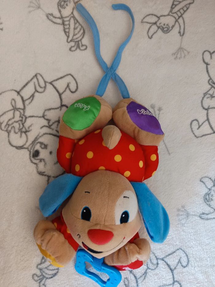Peluche chien musical, peut être accroché aux barreaux du lit