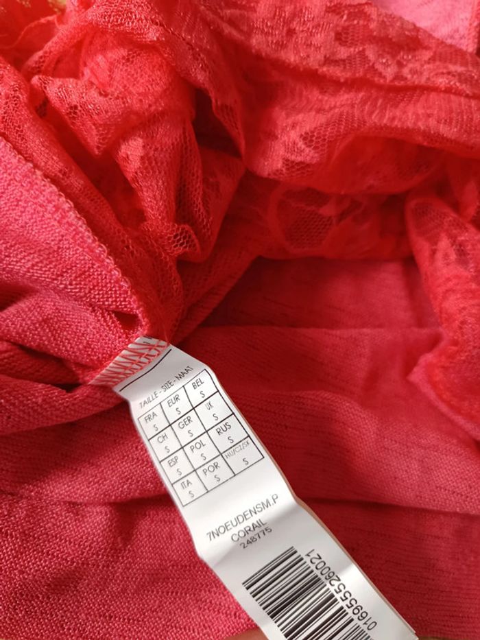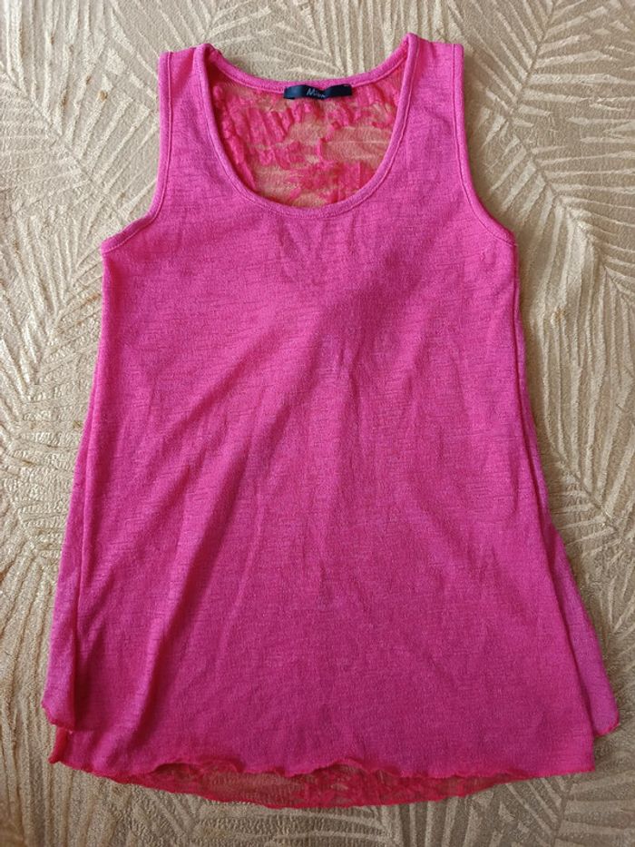 Débardeur orange saumon, dentelle au dos. Très peu porté