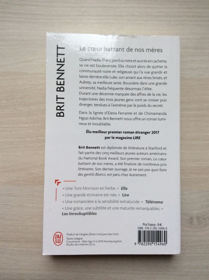 Vends le livre « Le cœur battant de nos mères » de Brit Bennett. Collection « J’ai lu » Je vends également d'autres livres : #livresV92B Valeur d’achat : 8,00€ Prix de vente : 4 € Livre NEUF donc non déchiré, non écorné, non abîmé A récupérer à Boulogne-Billancourt ou Porte Maillot