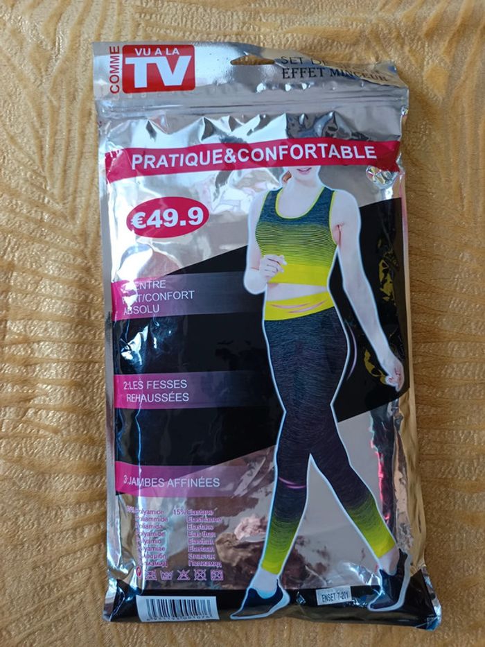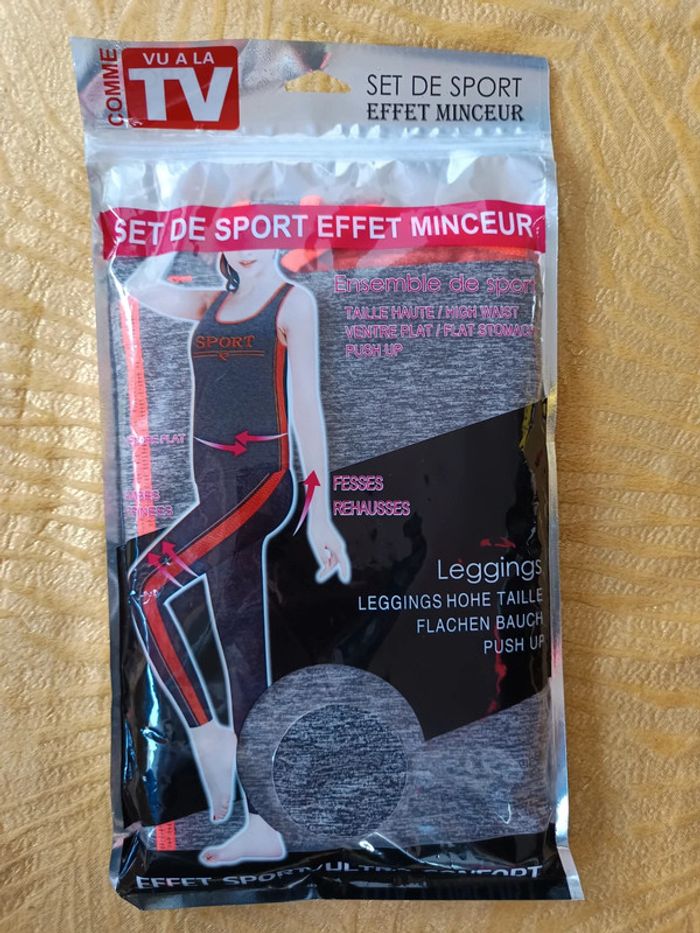 Set de sport effet minceur, legging+ débardeur. Gris et orange fluo