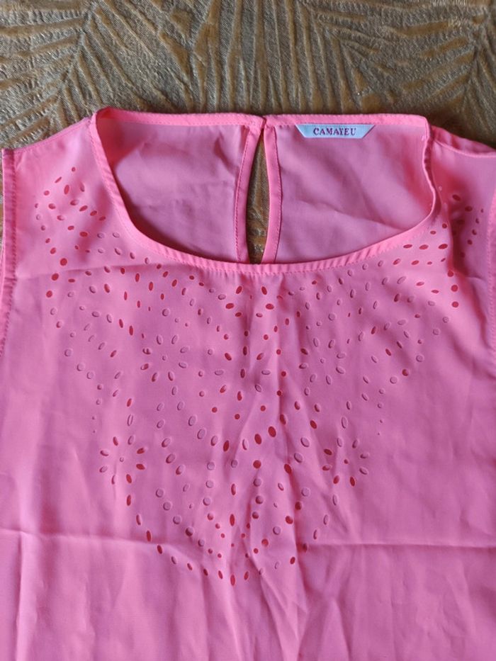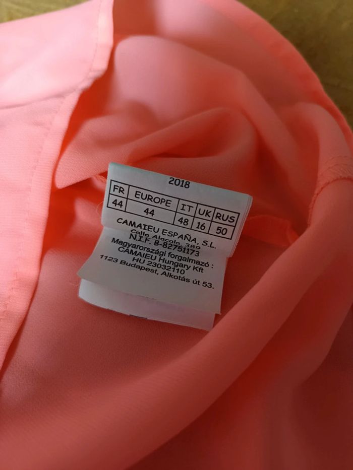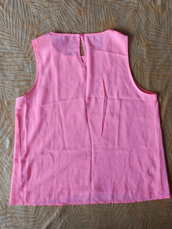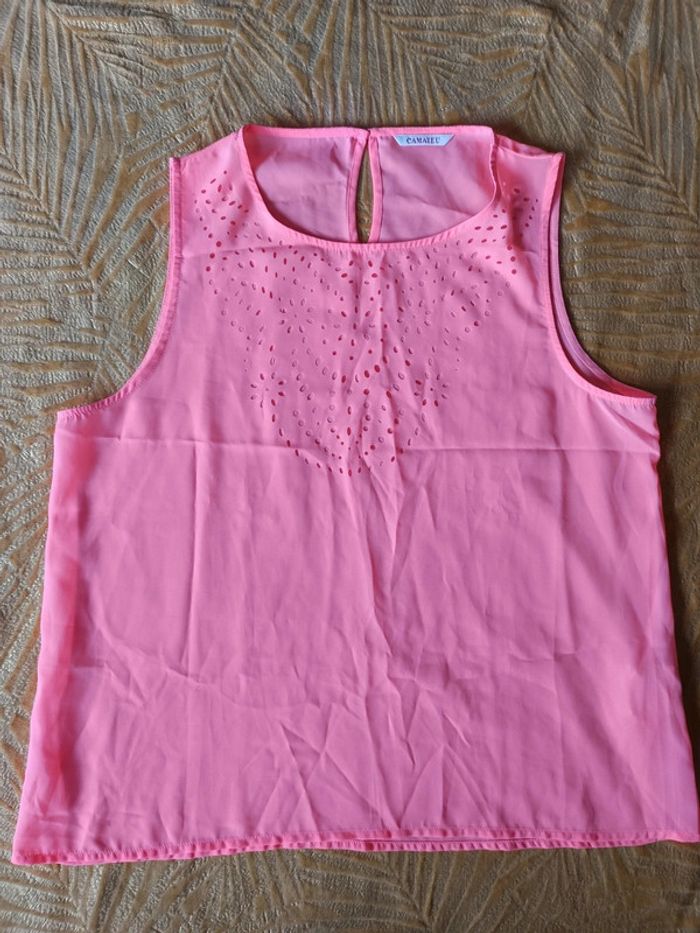 Débardeur orange corail Camaïeu, taille 44. La couleur correspond à la 4 ème photo (il n'est pas rose)