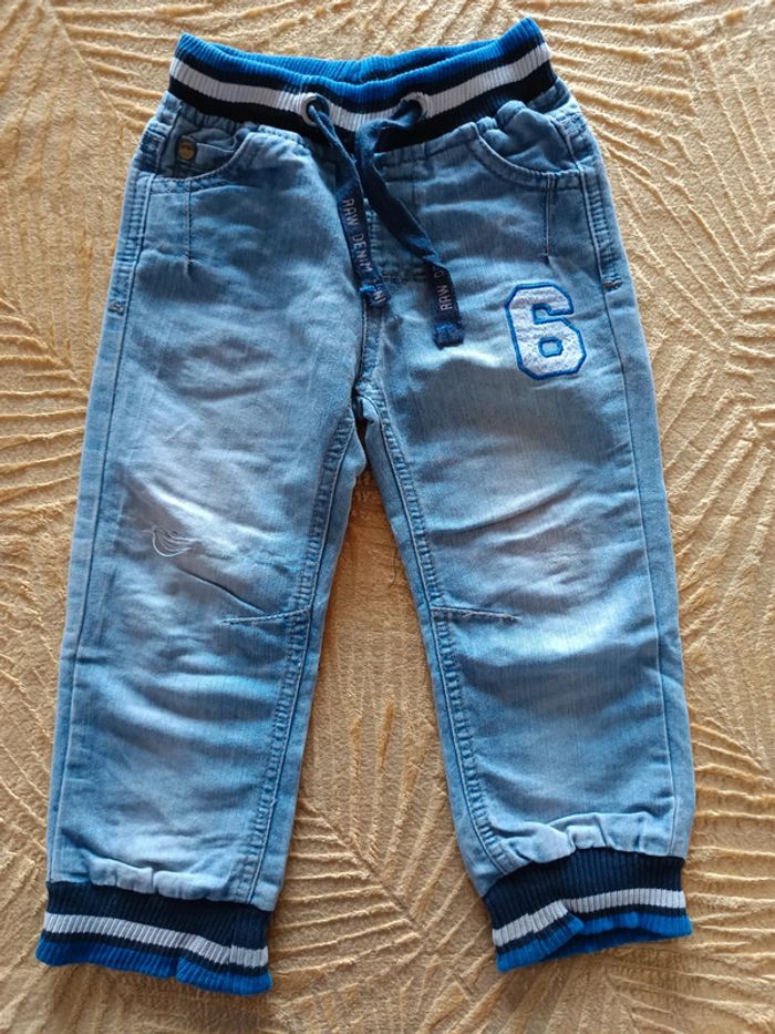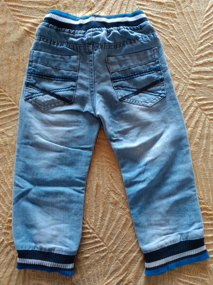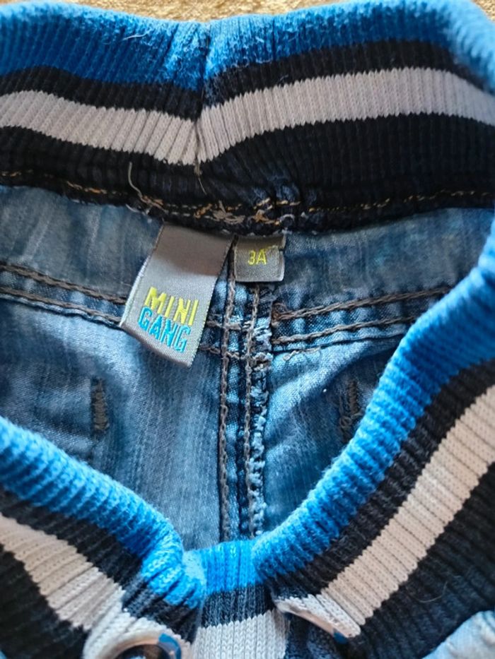 Pantalon jean taille 3ans Les élastiques des chevilles sont un peu détendus et une tâche à l'arrière du pantalon (voir dernière photo)