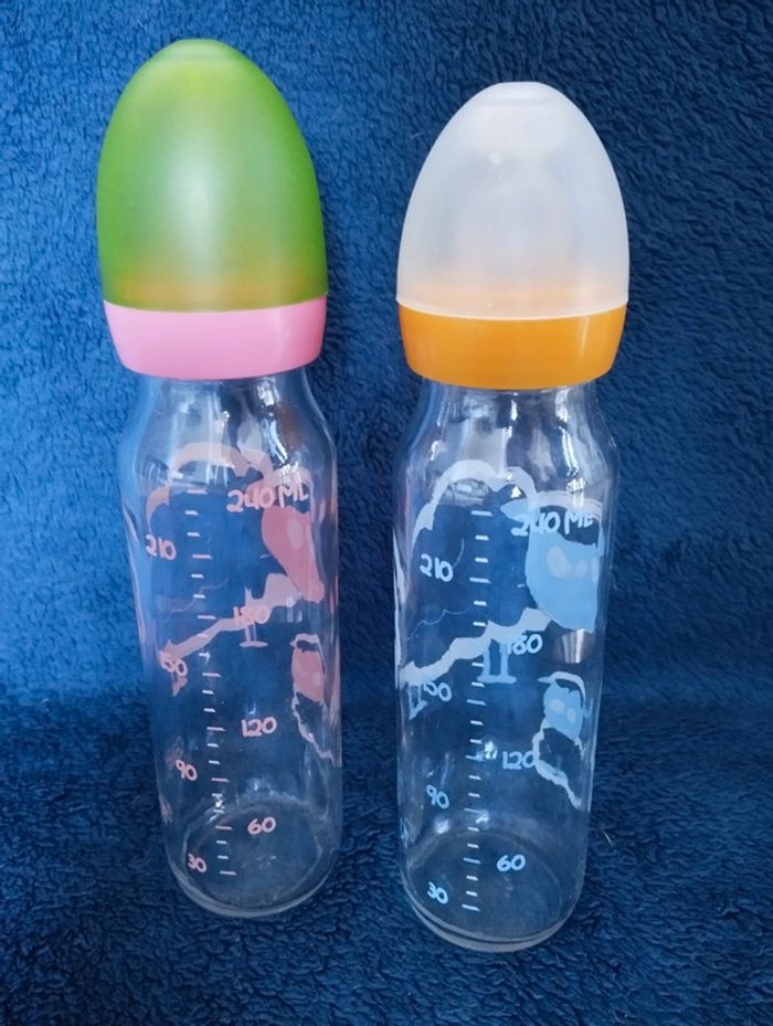 Lot de 2 biberons motif moutons Hauteur: 22,5cm avec bouchon 240ml
