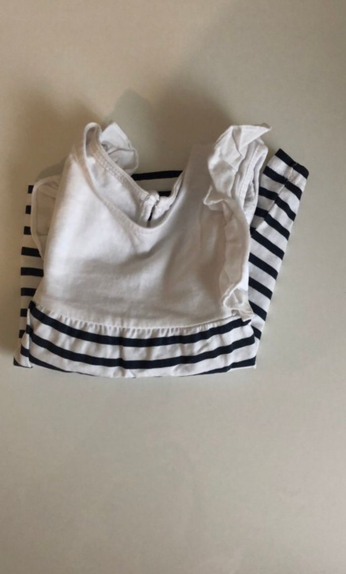 Robe été pour fille, couleur blanc avec rayure bleu foncé, taille 3 mois #3moisChloe34777