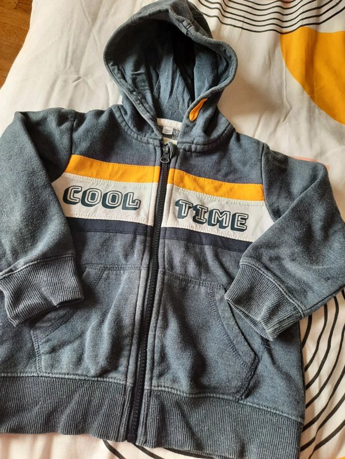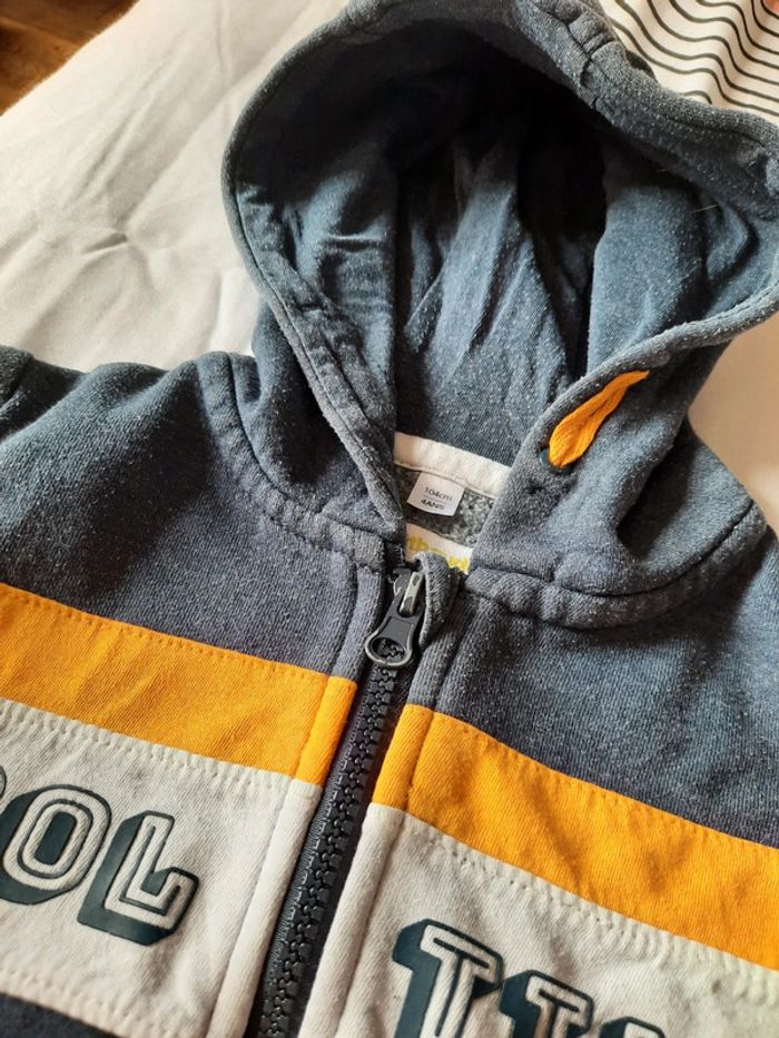 ‼️ Bel effet Gilet zippé gris-bleu avec bandes blanche et jaune, et poches. Bon état général. Retrouvez tous mes articles ⬇️ #catandco_4ans #catandco_pullsenfant