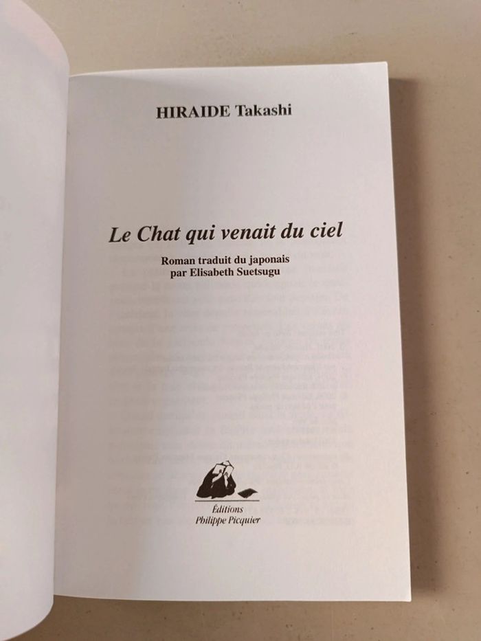 Hiraide Takashi le chat qui venait du ciel. Voici le lien pour voir tous mes livres : #romain75015_Livres. Envoi rapide et soigné bien protégé pour le transport.