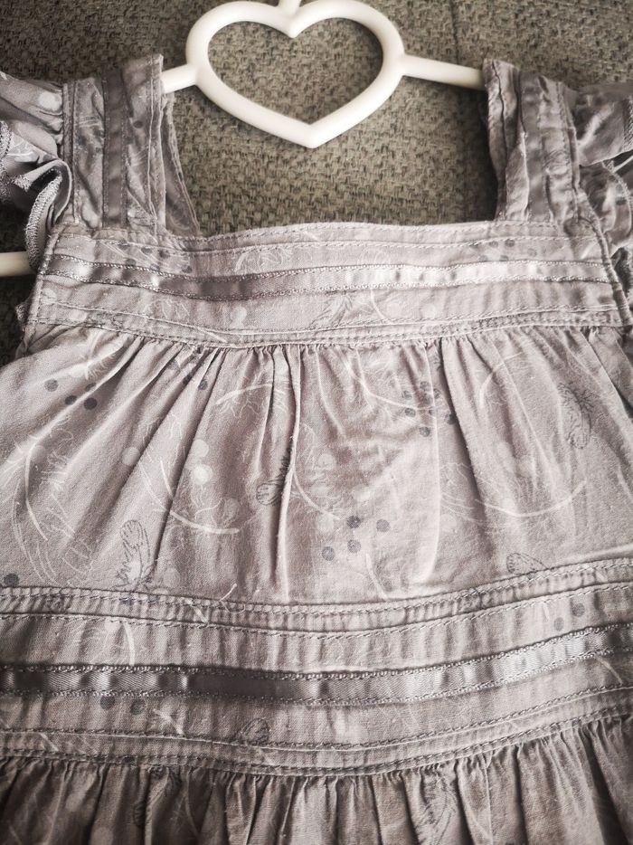 Robe grise motif plume Obaïbi 12 mois 74 cm Bouloche un petit peu par endroit voir photo