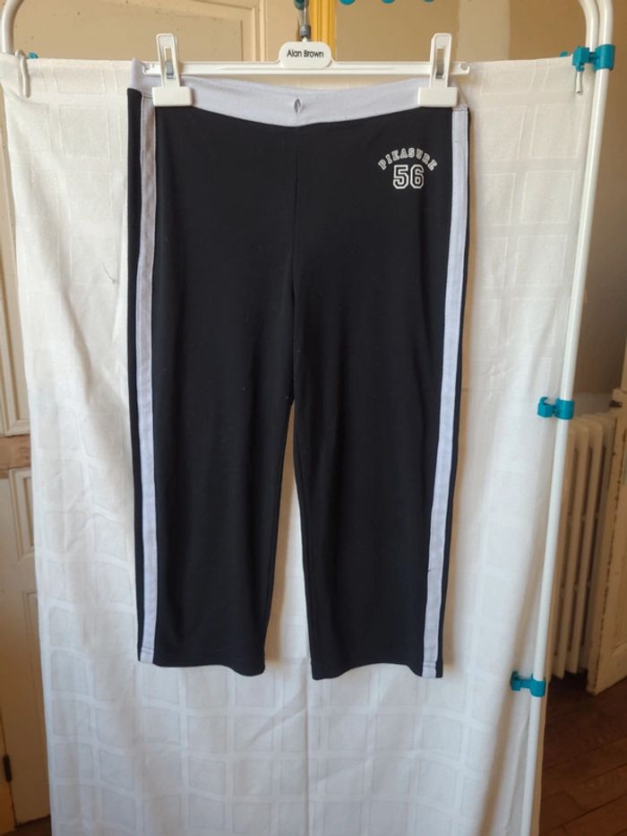 ⬇️mes autres annonces pour femme en taille 40 👉 #cg89femme40 😁 réductions activées des 2 articles ! un legging de sport noir avec rayure blanche sur le coté. Je n'ai plus le cordon => voir photo Longueur : 73 cm, Taille : 39 cm bon état, taille 38-40 #legging #sport #taille40 #taille38