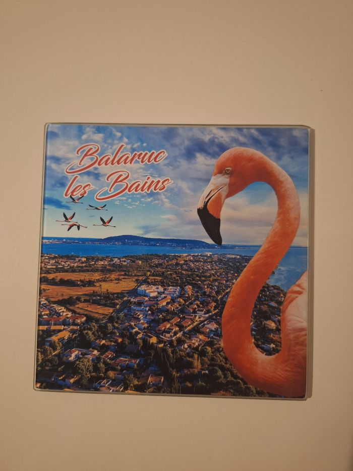 Bonjour ✴️Je vends ce dessous de table en parfait état ✴️En verre ✴️Mesurant 20x20cm et 0,5cm d'épaisseur ✴️Avec 4 ventouses à chaque coins pour une adhérence optimale ✴️Imprimé de la ville de Balaruc les bains et Flamant rose