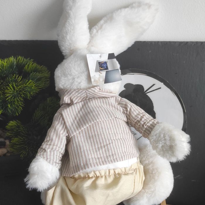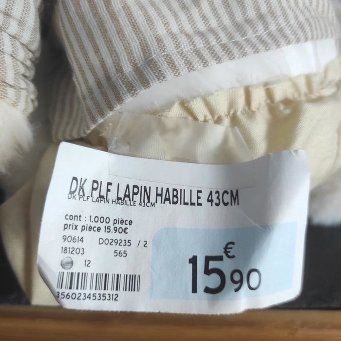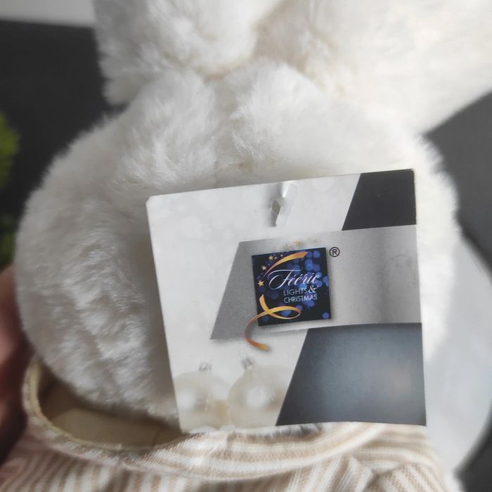 lapin decoration noel peluche blanc gilet rayure jaune beige 43 cm feerie light & christmas Neuf avec étiquette vous achetez ce que vous voyez Prix neuf à titre indicatif l étiquette de prix n est plus sur le lapin il reste uniquement l étiquette produit