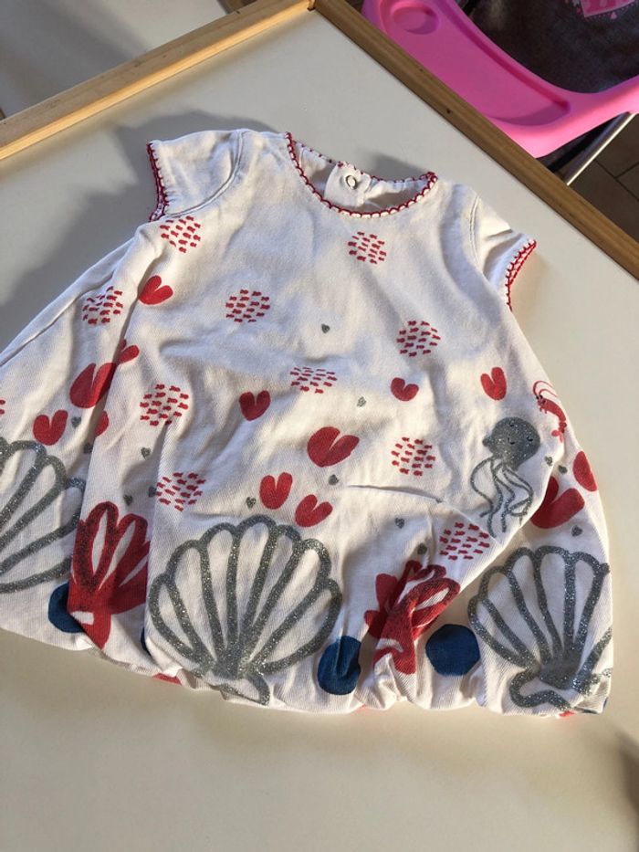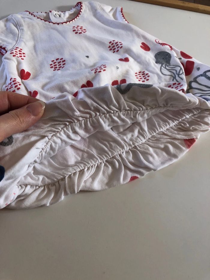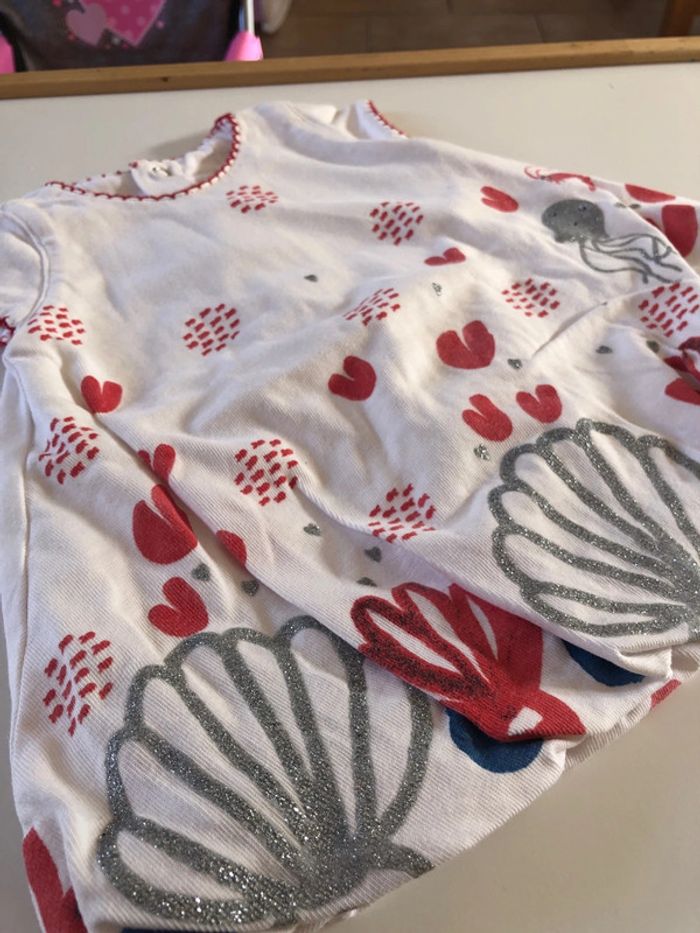 Très bel ensemble catimini sur le thème de la mer Blouse bouffante manches courtes avec dessins pailletés poissons , coquillages et cœurs rouges Pressions dans le dos Legging marine 3/4 avec logo coeur catimini Taille 1 mois #ulyssette28_1mois #ensemblecatiminibebefille #catiminibebefille1mois #bebefille1mois #catiminibebefille