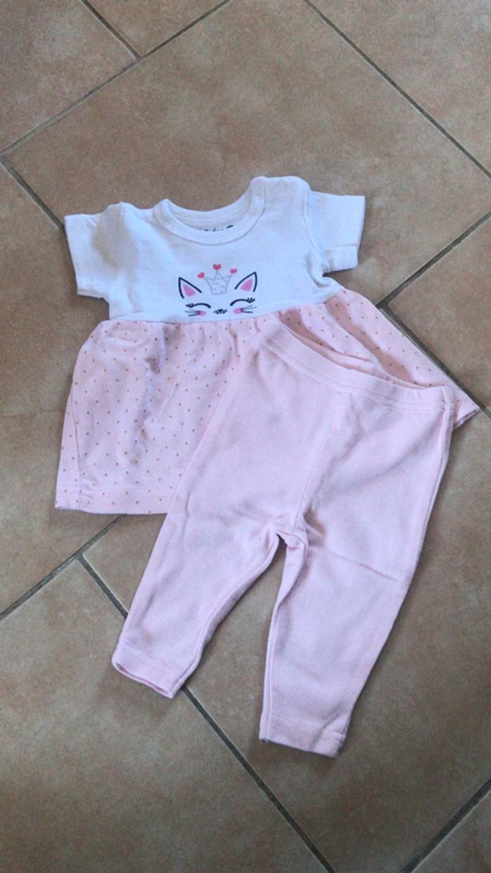 ensemble tunique évasée manches courtes pressions dans le cou legging long taille élastique lavé mais jamais porté taille 3 moi taille 3 mois