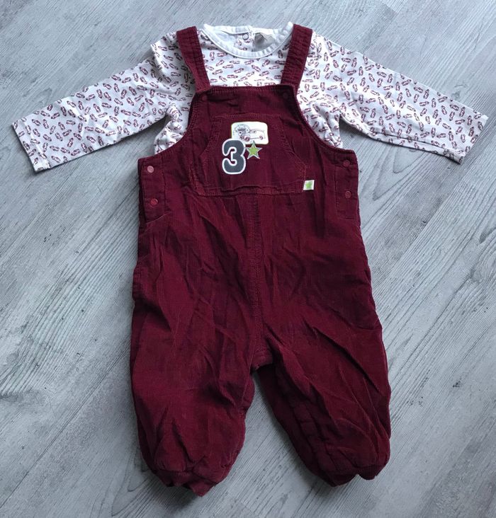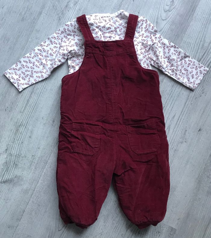 ensemble salopette en velours et tee shirt à manches longues de la marque Orchestra taille 12 mois légères traces d’utilisation occasion, bon état