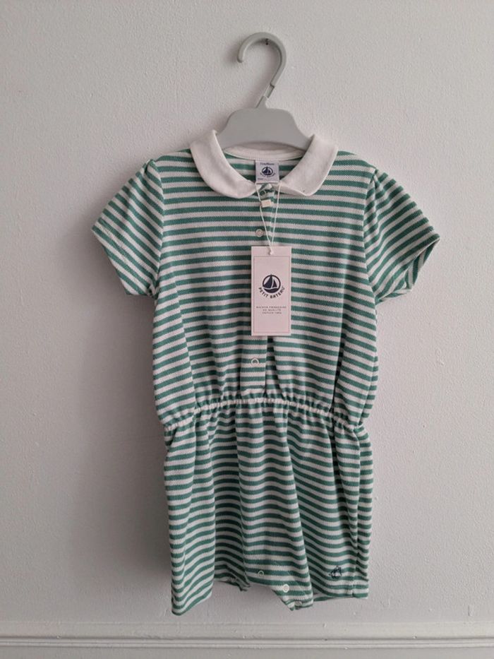 Combinaison rayon verte et blanche Petit Bateau 24 mois