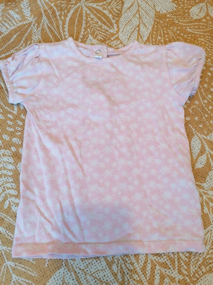 T shirt Lulu Castagnette Taille 18 mois Motif palmier blanc et rose pale D'autres vêtements en 18 mois sont visibles ici : #bébéfille18moisetoile67100