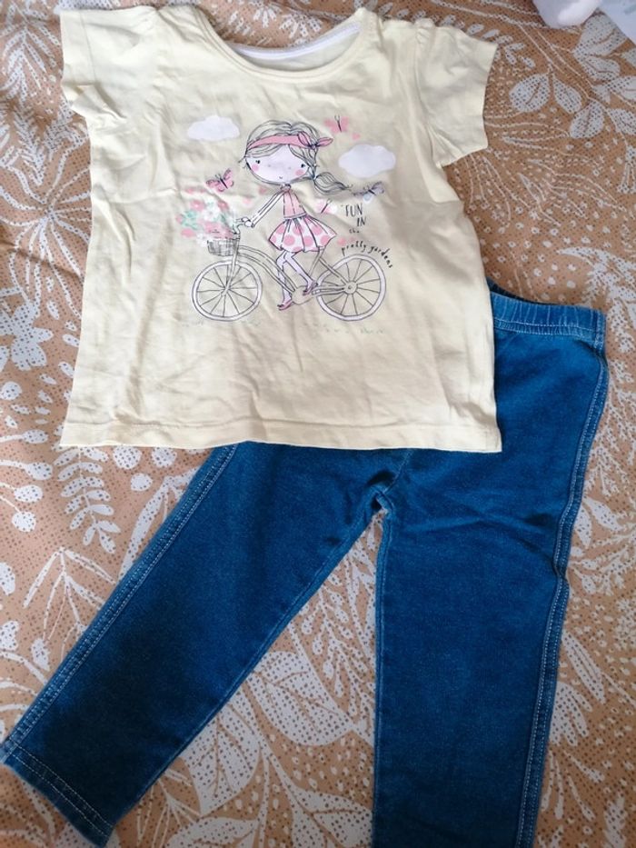 Ensemble composé d'un t shirt à motif (photo 2). Passé en machine mais le motif est quand même en bon état (voir photo) Et d'un jegging (jean slim mais en matière legging donc plus confortable et plus facile à enfiler !) D'autres articles en 18 mois dispo ici : #bébéfille18moisetoile67100