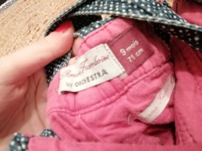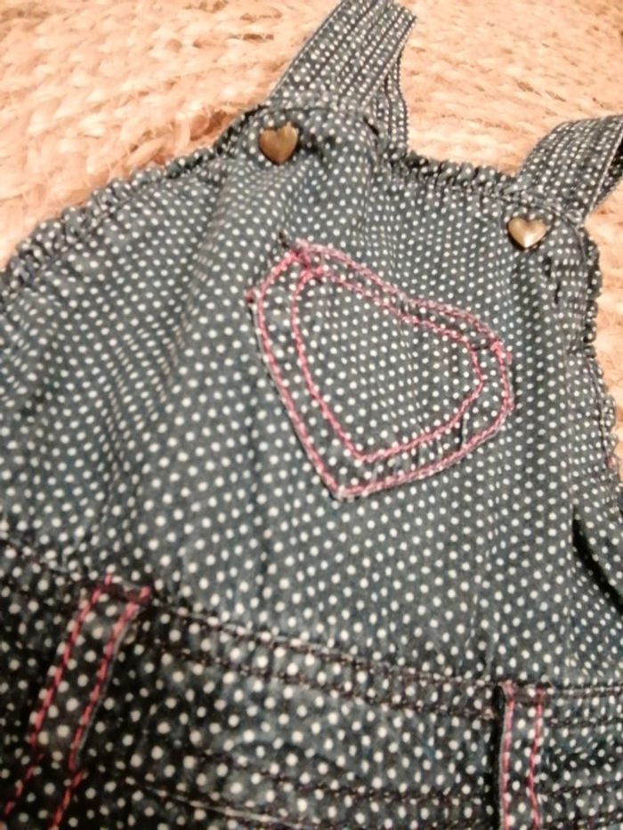 Salopette pantalon 9 mois Marque Orchestra Motif petit pois et cœur brodé (voir photo) Les boutons entre les jambes sont très pratiques Pas de trous, pas de tâches même si elle a été portée. #bébéfille9moisetoile67100