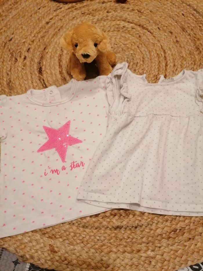 Lot de 2 t shirt manches courtes Motif étoile (photo 2) Le second motif pois (photo 3) #bébéfille12moisetoile67100
