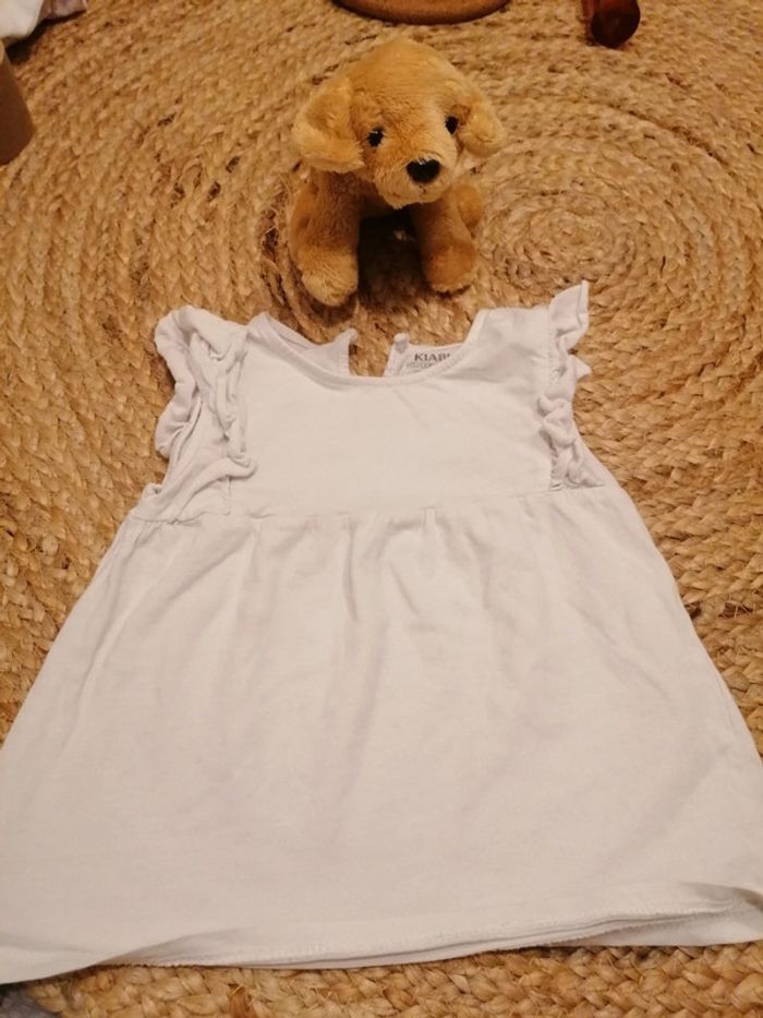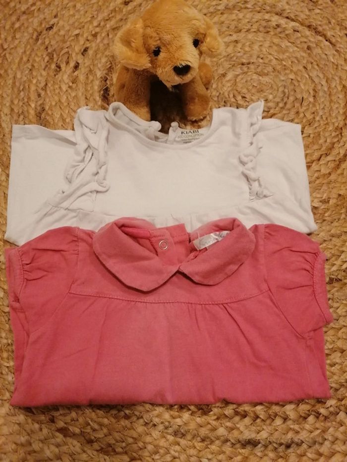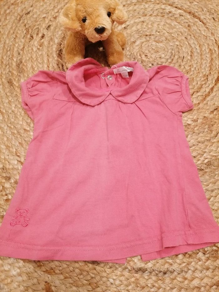 Un t shirt blanc avec froufrou sur les manches Un t shirt à col rose 12 mois Pas de trous, ni de tâches Très bon état #bébéfille12moisetoile67100