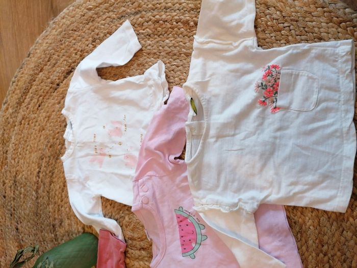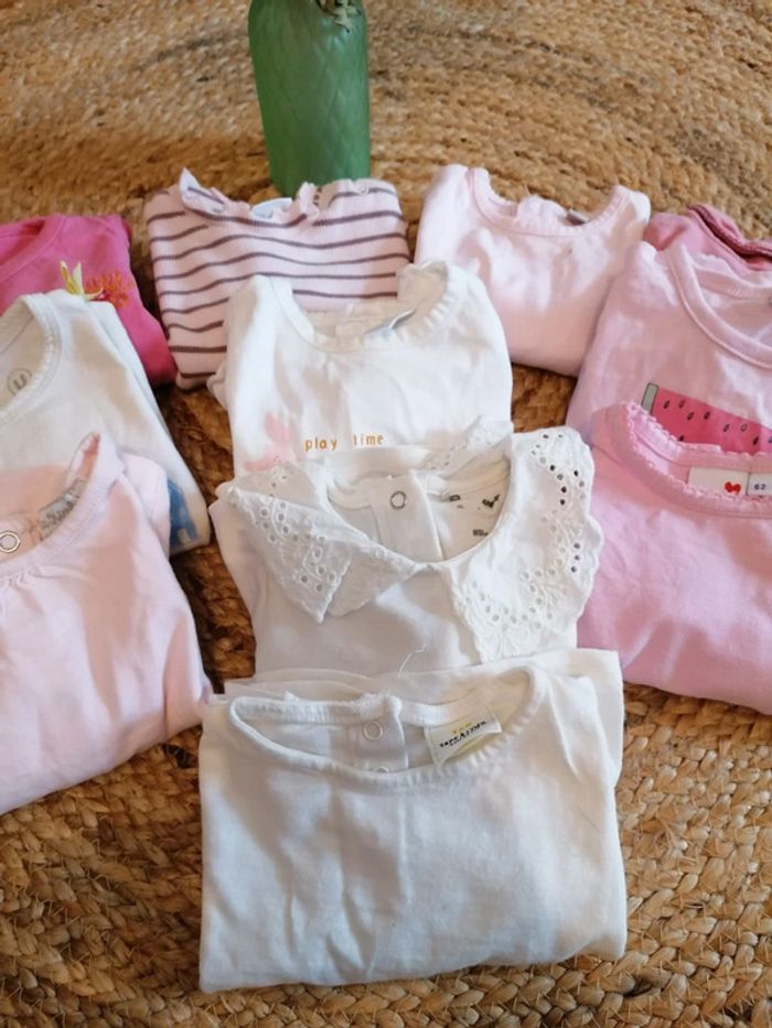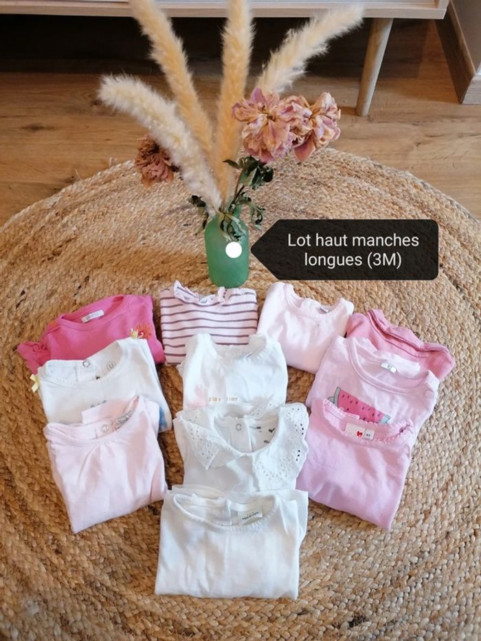 Lot de hauts bébé manches longues Taille 3 mois Il y en a certains des "basiques", d'autres à motifs. Pas de trous ni de tâches et maison non fumeur.