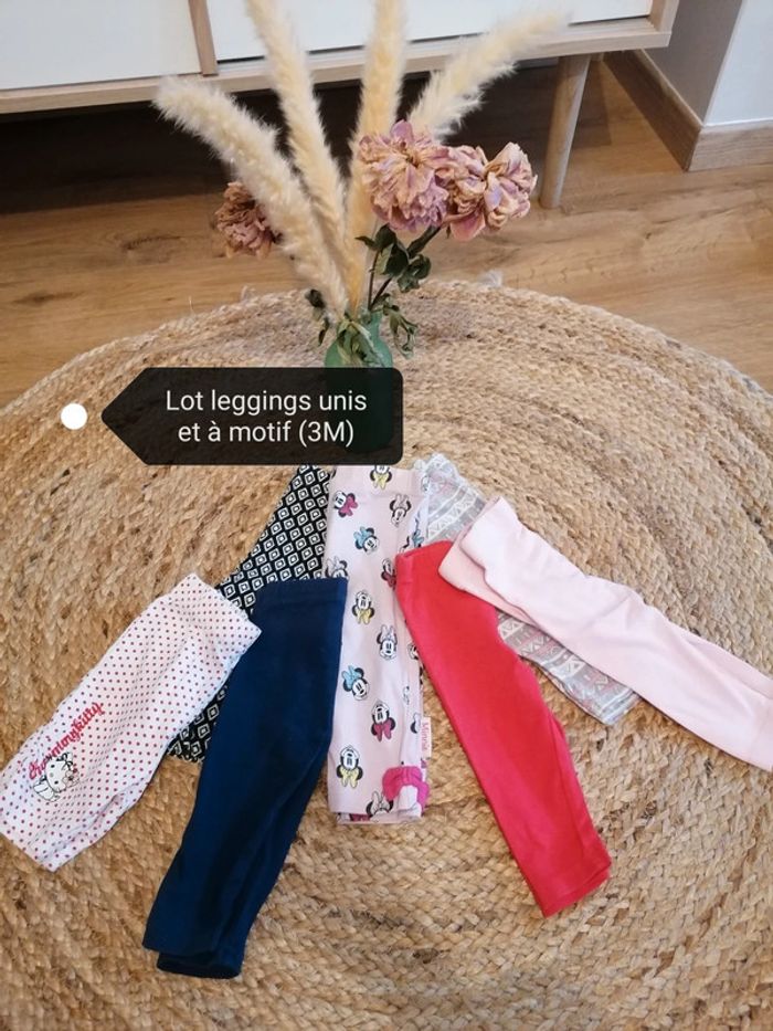 Lot de legging bébé Taille 3M Pas de trous, pas de tâches. Motifs et unis. Marques diverses... Possible achat à l'unité Réductions activées sur les lots