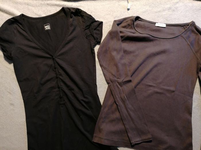 Lot de 2 basiques femme Un manche courte noir très bon état Un manche longue gris, un peu + porté mais en bon état aussi (pas de trous ni de tâches) #Femme36etoile67100