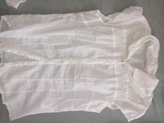 Lot de 4 hauts blancs ou crème Taille S Une chemise Une blouse avec detail creme Un Haut à faux bouton Un haut manche dentelle Pas de trous, ni de tâches Le tout est tres bon état et maison non fumeur Consultez mon hashtag #Femme36etoile67100 pour faire des lots