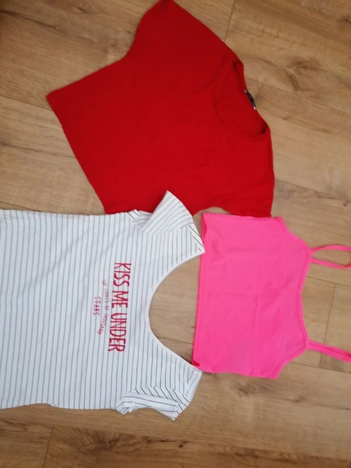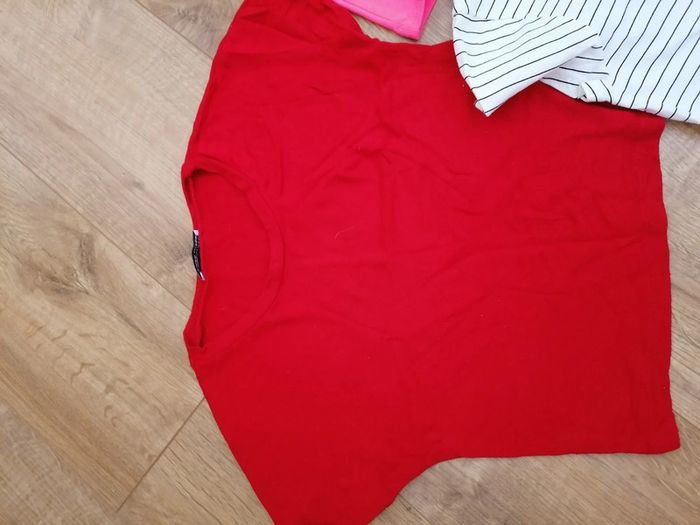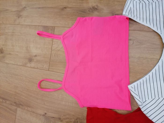 Le lot comprend 3 crop top Un rouge de la marque Zara taille S Un rayé de la marque c&A jamais porté (taille M mais taille petit, correspond à un S) Un rose flash de la marque H&M taille S Prix du lot 3 euros #Femme36etoile67100
