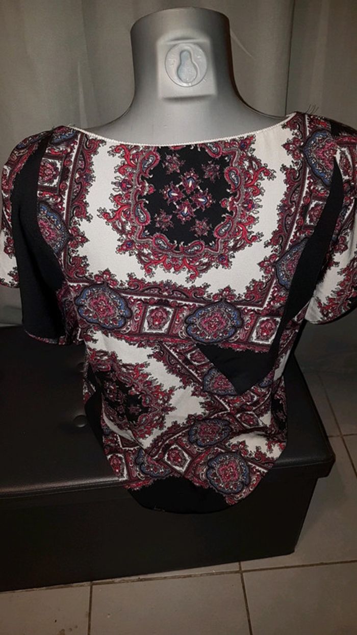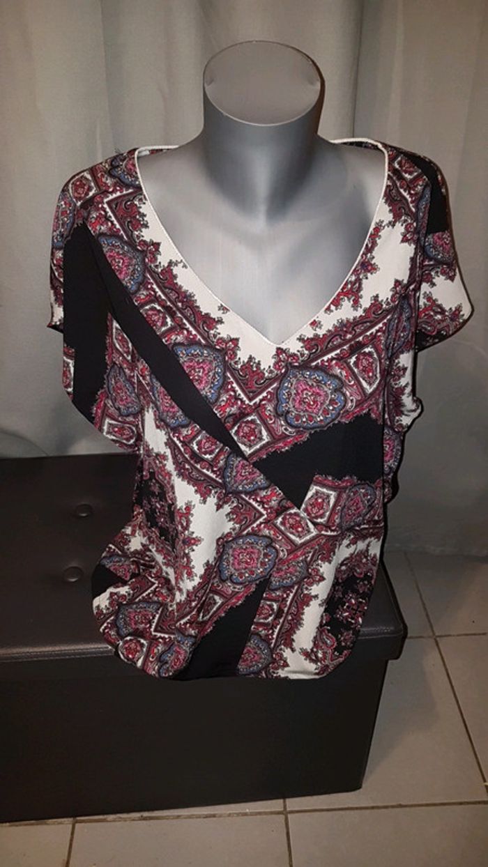 Joli haut manches courtes à motif gris noir rose bleu Taille unique #marjotibofemme38 #marjotibofemme40