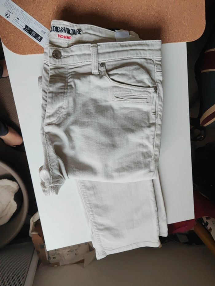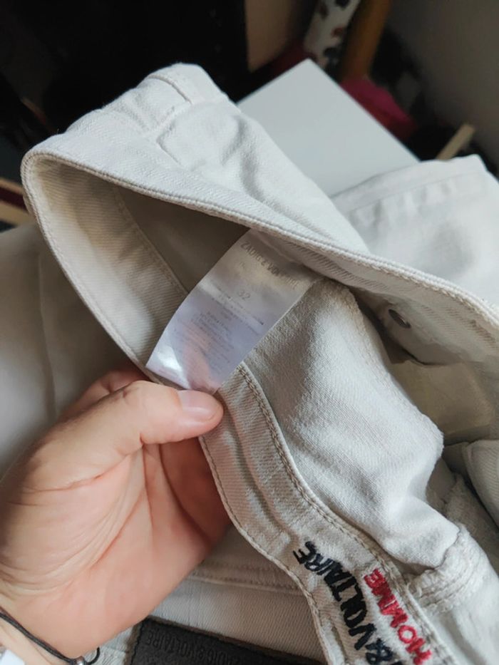 Jean Zadig et Voltaire beige Taille 32 En très bon état A noter bord de la poche jauni et 3 points sur une jambe Coupe droite slim