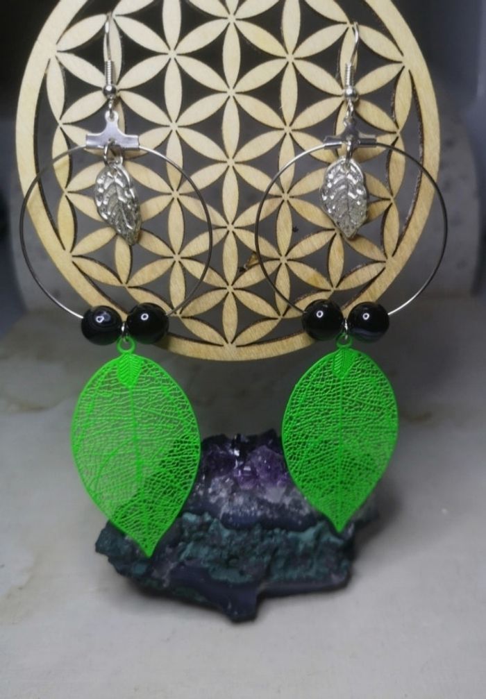 Boucles d'oreilles feuilles vertes en Tourmaline - photo numéro 1