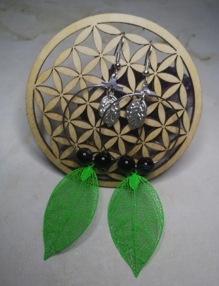 Boucles d'oreilles feuilles vertes en Tourmaline