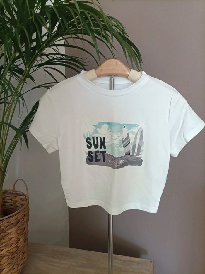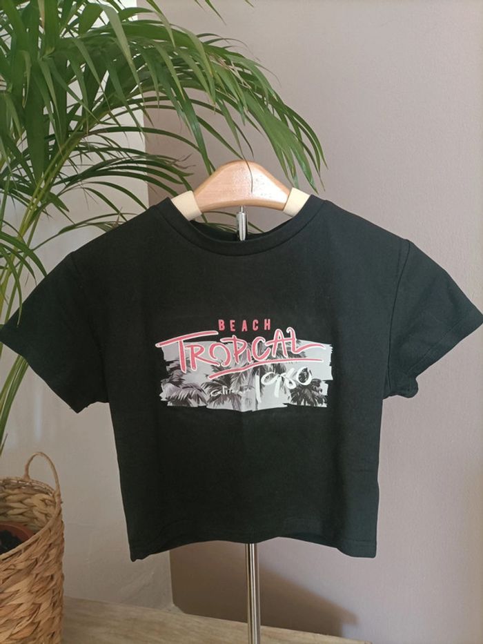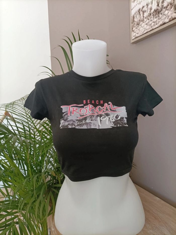 Lot de 2 T-shirts Crops Top noir et blanc  imprimé Tropical Sunset - photo numéro 10