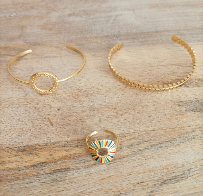 Ensemble de bijoux Bracelets + Bague dorés - photo numéro 1